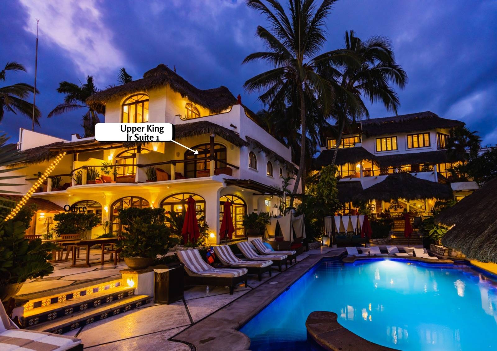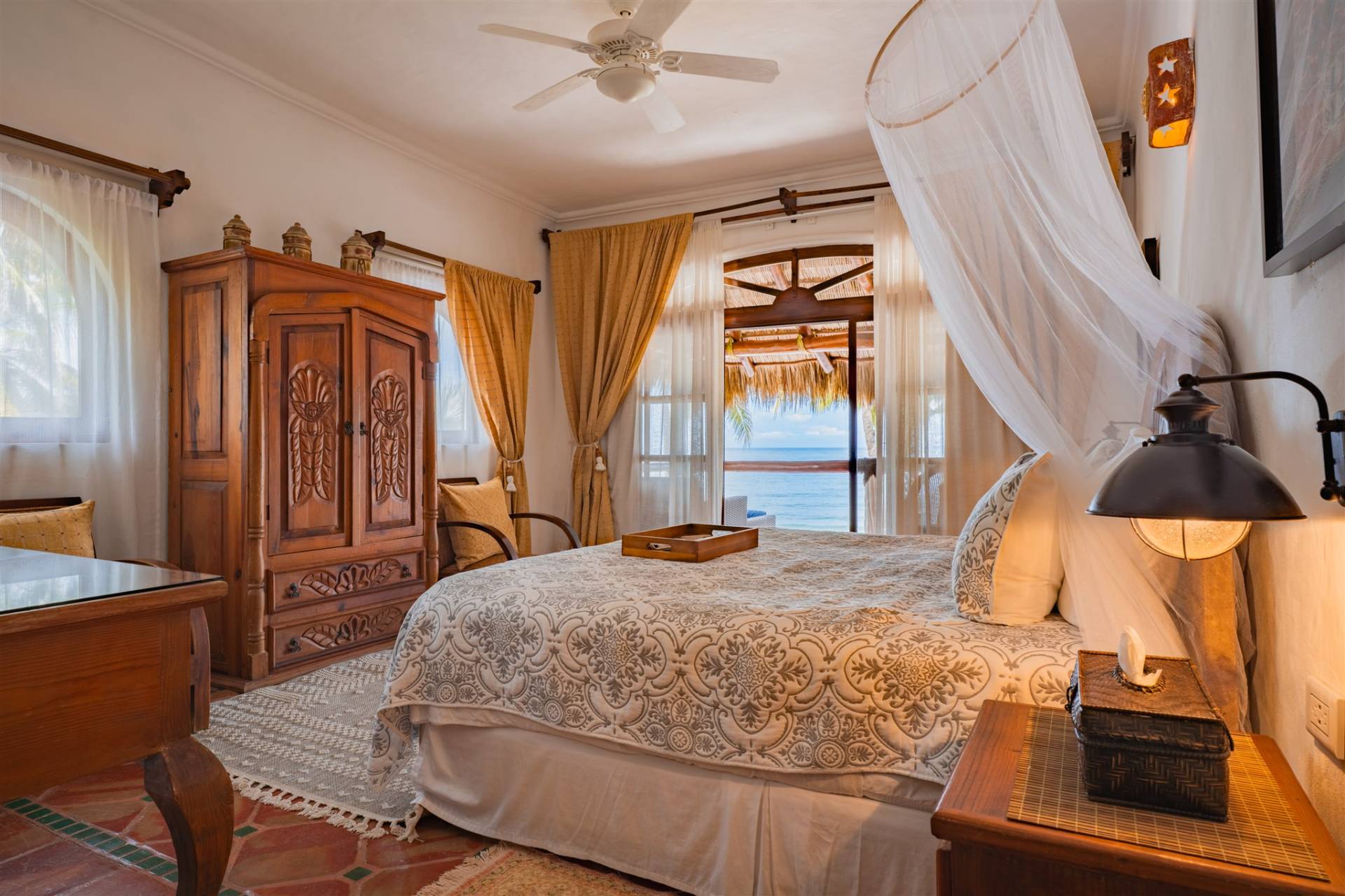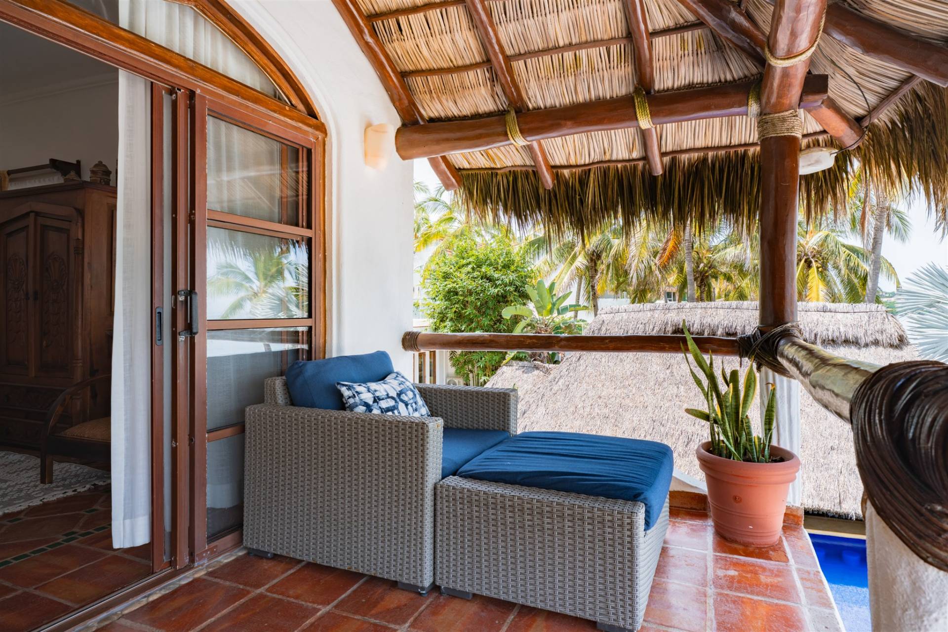 • High ceilings with a natural palapa (palm thatch) roof